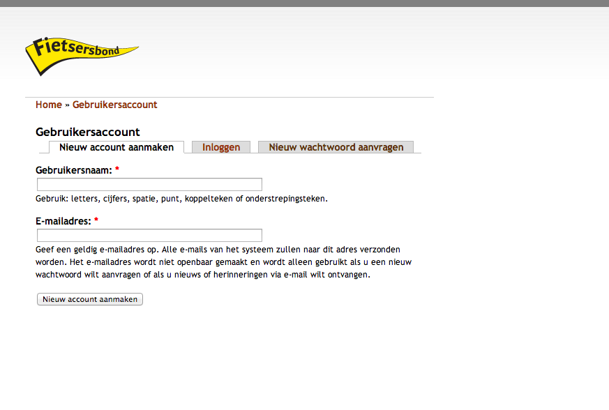 Klik op het woord registratiepagina. Je komt op een pagina van de algemene Fietsersbondwebsite.